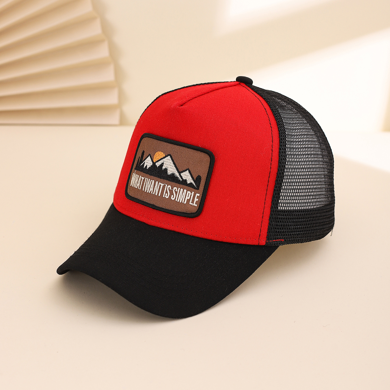 Men's Patchwork Sunset Mountain Mesh Baseball Cap, Fashionable And Casual Baseball Cap, Spring And Summer Outdoor Travel And Sports